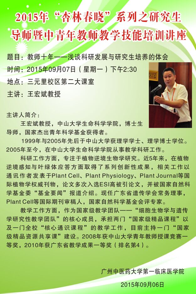 2015年“杏林春晓”系列之研究生导师暨中青年教师教学技能培训讲座