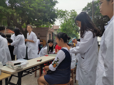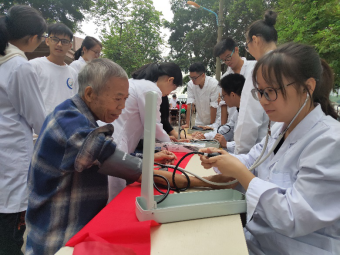 义诊刚开始,由于时间尚早且天气偏凉,前来参加的村民较少,路过的村民更青睐于量血压。随着时间渐入正午,人流量逐渐增多,大多数村民经过摊位都会驻足咨询并参与我们的义诊活动。活动顺利进行,大家各自在自己的任务摊位上熟练地开展系列义诊项目,在活动过程中,我们同学会根据村民每个人的自身状况描述结合血压情况给予合理的建议。本次义诊活动得到了当地村民的积极回应与认可,这是对我们今日活动的最高褒奖。