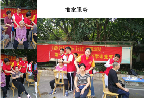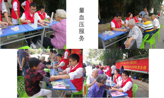 为了更好地为社区群众服务,党支部根据秋天天气干燥,社区居民老年人多,有许多居民看手机用眼太多等情况,提供了量血压、推拿、花茶、耳穴贴敷等志愿服务。同时为独守在家、行动不便的老人送医上门,表达了党支部全心全意为人民群众健康需求服务的初心。看到老人家发自内心的笑容,学生党员们觉得再累也是值得,再苦也是开心。