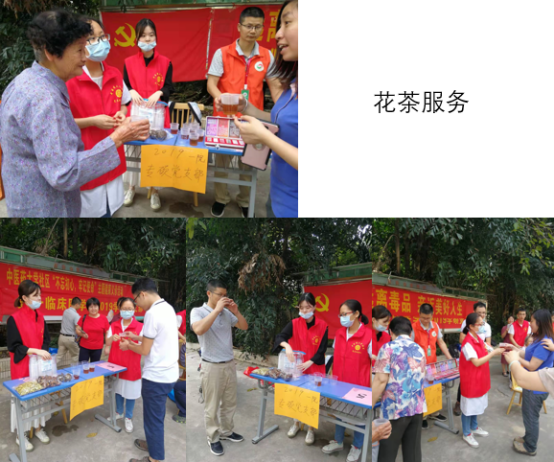 本次活动中,支部党员用罗汉果、菊花等药材精心配伍泡出了口感舒适的花茶,街坊们表示非常喜爱,不少人感兴趣地咨询花茶的成分、功效,同学们借机向群众做了常用健康知识的科普宣传;居民们频频夸赞同学们的推拿手法做的好,一句“非常舒服”让同学们觉得自己学的专业很有用,义诊活动很有意义,同时在运用中医特色疗法就近服务小区居民的义诊活动中体会到群众工作无小事,还要继续牢记中医学子之初心,践行大医精诚的理念,更加努力学习,提高医学水平,更好地服务广大人民群众。