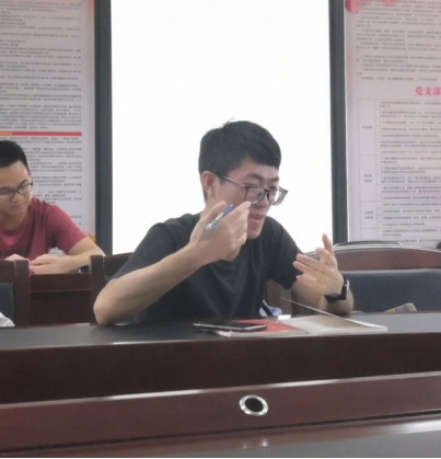 会议的第二部分由该支部黄秋谷同学通过案例分享带领支部党员围绕主题进行讨论分享。黄秋谷同学分别向同学们展示了“黄大年教授为我国教育科研事业作出突出贡献的先进事迹”、以及“多位党员前辈的入党申请书”两个视频,同学们观看后展开了热烈的讨论,有的表达了自己深受前辈们坚持初心、脚踏实地做好本职工作的精神的鼓舞;有的分享了自己入党的初心和进行入党宣誓时的激动心情;有的更是在看完视频后留下了激动的泪水,决心自己要在当下浮躁的环境下抵御外界各种干扰,一直在我党指引的正确道路上鞭策自己不断前进,为国家的发展人民的幸福贡献一份力量。