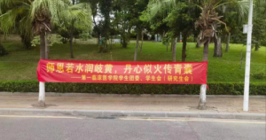 一院学子校园内悬挂教师节横幅