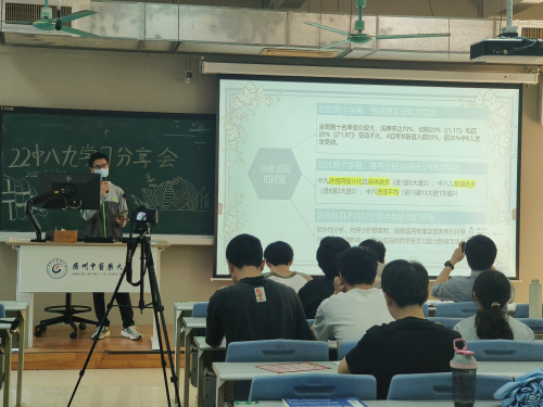 2023年11月24日,由2022级中医学八九年制举办的“凝心聚力共奋进,砥砺前行再扬帆”故事思政之生涯榜样学习交流会在广州中医药大学大学城校区教学楼A209教室顺利举行。本次活动有幸邀请到了2023级中医史文献系硕士张驰名、2020级中医学九年制蔡嘉铬莅临现场分享自己学习生活故事,年级辅导员何诗诗及2022级中医学八九年制(精诚班)87名同学参与本次学习交流会。