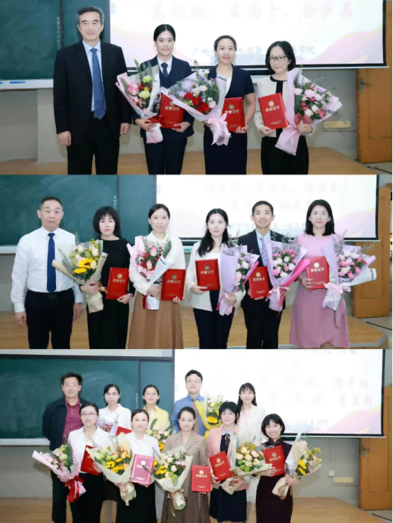 经过一天的激烈比拼,儿科学教研室的高烁烁、伤寒论教研室的徐笋晶和针推康复教研室的王南卜荣获一等奖;妇科学教研室刘晓静、影像学教研室李伊凡、杨伟萍、肿瘤学教研室李佳殷和护理学教研室张建东荣获二等奖;影像学教研室李锷、杨翠、曾兰芬、文婷,妇科学教研室邱嫔,伤寒论教研室黄开颜,护理学教研室吴晓雪以及英德市中医院的李夏静荣获优秀奖。此外,医学影像学教研室荣获“最佳组织奖”,李佳殷老师荣获“最受学生欢迎奖”,邱嫔老师荣获 “最佳教学设计奖”,王南卜老师荣获“最佳教学演示奖”,李夏静老师荣获“最积极参与奖”。在轻快的音乐声中,学院李俊院长、关彤副院长及与会的专家评委分别为获奖老师颁发了奖状、奖牌。