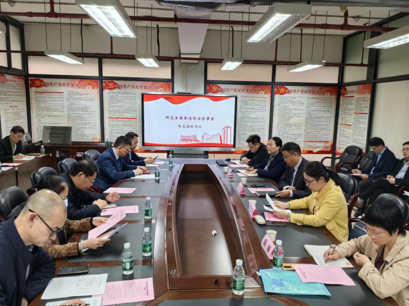 会议首先由郭文海副书记向全体参会人员介绍学院研究生思政教育基本情况,重点强调学生安全的底线思维,包括学院校外走读学生情况、重点关注学生情况,并重点传达全省校园安全工作暨“双减”工作推进会视频会议精神。接着,郭书记针对近期我院发生一起研究生宿舍失火事件情况进行通报,向全体参会人员强调宿舍消防安全的重要性。随后,向各系部主任和教研室主任介绍学院2024届毕业生就业情况,强化“导师第一责任人”的意识,逐级传导就业压力,切实做好我院2024届毕业生就业工作。
