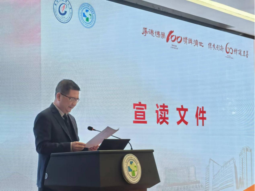 广州中医药大学第一附属医院党委副书记、纪委书记张念樵宣读文件