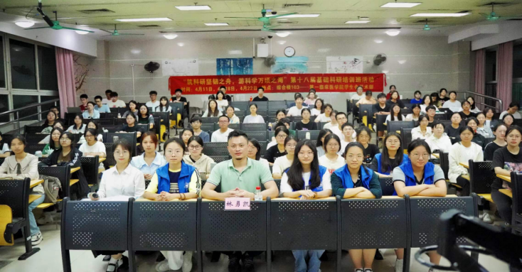 林勇凯老师在授课过程中多次使用现身说法,结合自身科研经历和创业经验为同学们揭开创新创业的神秘面纱,使同学们对参加创新创业的具体路径拥有更深刻的理解。讲座结束后,现场多位同学就今天的讲座内容对林勇凯老师提出了相关问题,林勇凯老师深入浅出,一一解答,让同学们更加了解课题申报的具体细节。最后,在林勇凯老师、工作人员以及观众的合影留念中,基础科研培训班第三次授课落下帷幕。