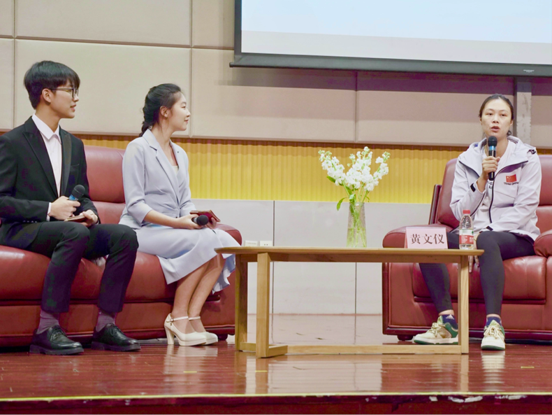 本次活动以“浆声阵阵踏浪行,扬帆起航向未来”为主题,黄文仪分享了自己年轻时在赛艇运动中的奋斗经历与成功经验,鼓励同学们保持对运动的热情和动力,在日常生活中培养和实践团队精神,保持奋斗努力的初心,在追逐目标的过程中坚持不懈,发扬体育拼搏精神,实现自我的全面发展。