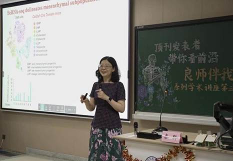 随后,在同学们在热烈掌声中,秦聆教授上台,本场讲座正式开始。秦聆教授以自身研究领域为切入点,围绕“骨骼生物学前沿—科研探索的方式方法”这一主题,分享了骨骼发育、稳态、衰老和疾病的细胞和分子基础研究的经验与感悟。讲座最后,秦聆教授还提供了骨骼疾病的基础研究一些方向和思路,授课结束后,同学们就今天在讲座内容积极提问、踊跃发言,秦教授根据各个问题,给出了具有针对性和实用性的建议。最后,在秦教授、王教授、出席现场在各位老师、同学们和工作人员合影留念后,良师伴我行系列学术讲座第三场落下帷幕。