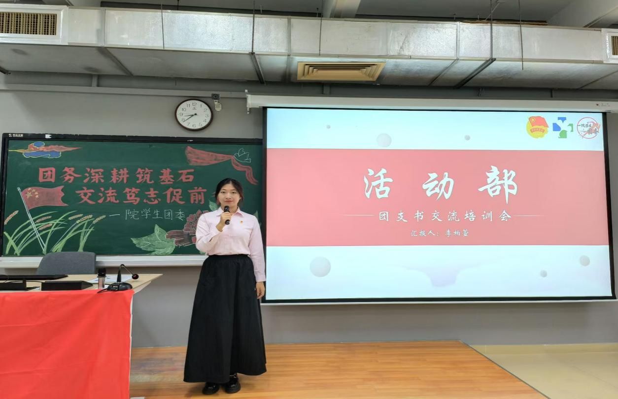 李柏萱同学代表活动部发言,她介绍了活动部举办的特色活动和工作内容以及团支书在这些工作中的职责,重点介绍了团支书在团日活动和升旗仪式中需要做的事情。团日活动和升旗仪式是对团支书能力的重大考验,相信李柏萱同学的介绍能让团支书们更好地开展团日活动和升旗仪式的准备工作。