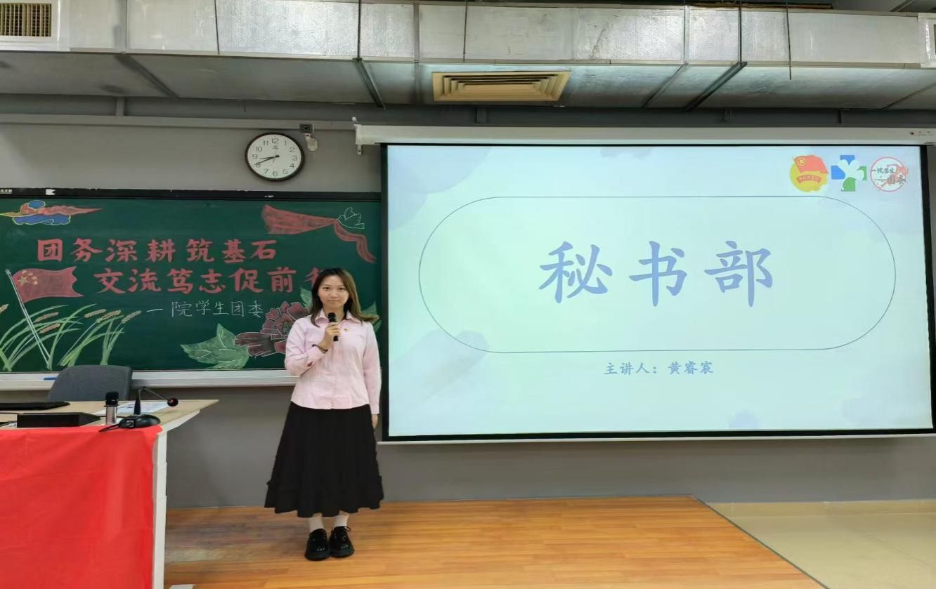 黄睿宸同学代表秘书部发言,她向团支书们介绍了发票报销和二课学时的相关内容。她明确了团支部活动报销的具体标准,并阐述了第二课堂学分的要求。同时,她还讲解了“到梦空间”活动发布的流程和需注意的事项,为团支部活动的顺利进行提供了保障