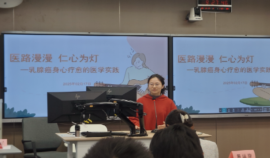 医者仁心,疗愈身心。一附院乳腺科林曼迪老师以“医路漫漫,仁心为灯”为主题进行了课程分享。林曼迪老师以当代乳腺癌治疗的实践背景为例,深刻地阐述了医学人文关怀精神在疾病治疗过程中的不可或缺性,同时也为大家展示了近年来一附院为关怀患者、预防乳腺癌开展的丰富活动,充分展现了一院乳腺科的人文关怀精神。
