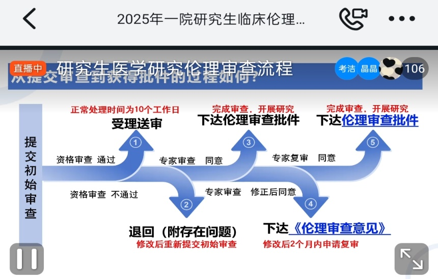 这场干货满满的培训,为研究生们搭建了从理论到实践的伦理审查桥梁,既明晰了“受试者权益优先”的核心准则,也理顺了从方案设计到审查申请的操作路径。通过案例剖析与流程指导,“伦理合规”不再是抽象概念,而是融入科研各环节的具体规范。未来,研究生们将以此次培训为起点,在学术探索中始终恪守伦理底线、心怀人文关怀,让严谨的临床研究与温热的医者仁心同频共振,为守护人类健康贡献兼具科学价值与伦理温度的研究力量。