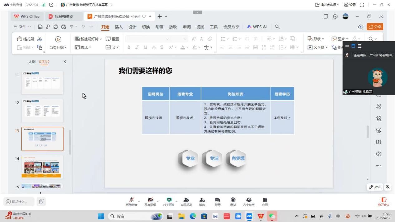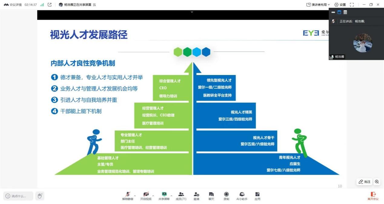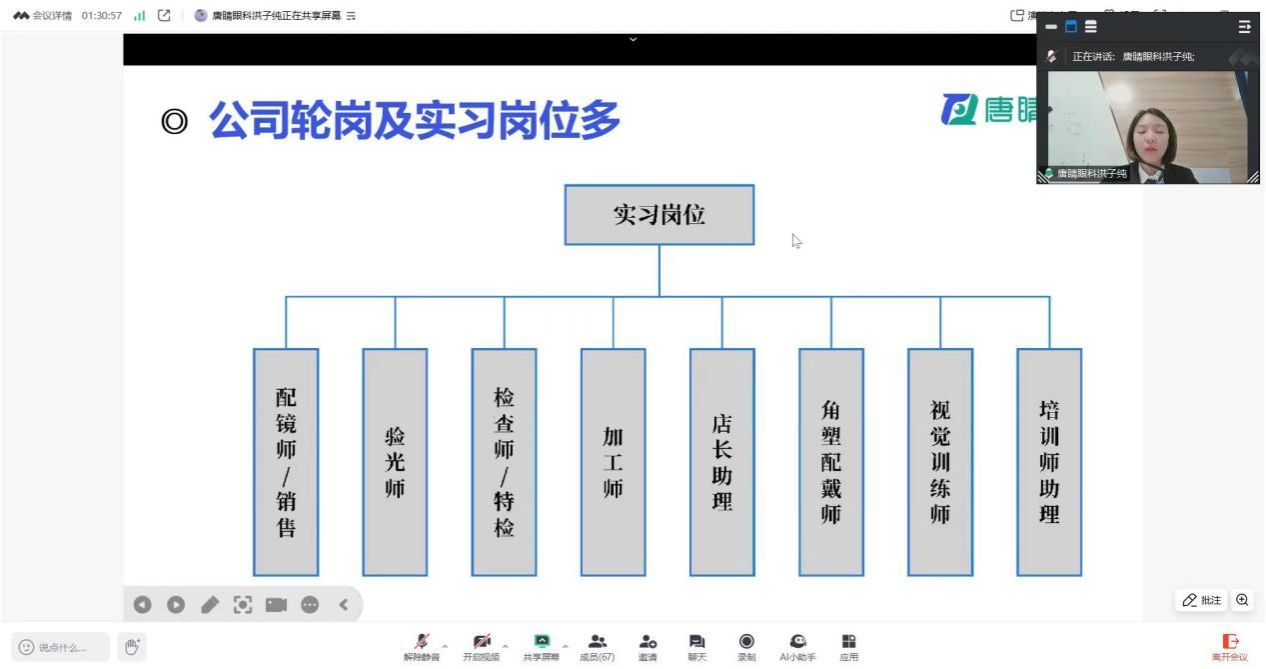 在用人单位展示环节,新瞳(上海)医院管理有限公司、唐睛眼镜眼科和东莞光明眼科医院等多家知名眼科医疗单位,通过视频、PPT等多种形式,详细介绍了企业的基本情况、业务范围、人才需求和发展前景,为毕业生们提供了丰富的就业选择和发展机会,也让他们对未来的职业生涯充满了期待和憧憬。