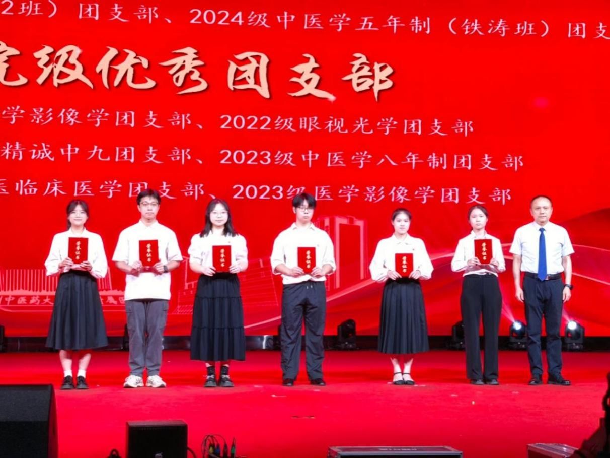 表彰环节中,学院先后对2024-2025学年院级优秀骨干、优秀共青团员、优秀共青团干部,校级五四红旗团委、优秀学生会、优秀研究生会,院级最佳团员发展阵地、优秀团支部,以及国家奖学金、国家励志奖学金获得者进行表彰。获奖代表有序登台领奖,2023级中医学专业妮尕热·艾合买提分享香港中文大学的进修经历,鼓励广大学子勇敢拼搏出自己想要的未来;2023级医学影像学专业许安琦作为国家励志奖学金的代表,首先感谢了学校学院一直以来对于自己成长的关心和帮助,同时希望广大学子铭记荣誉背后的责任,以实际行动回馈社会;2020级医学影像学班级作为十佳班集体代表,以详实的数据和鲜明的案例分享班级建设的创新举措与丰硕成果,展现出独特的集体魅力与奋进风采。现场还回顾了一院学子在大学生创新创业训练计划、“挑战杯”等学术竞赛中的卓越表现。
