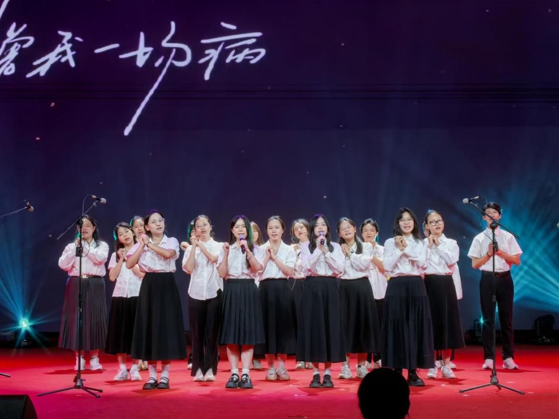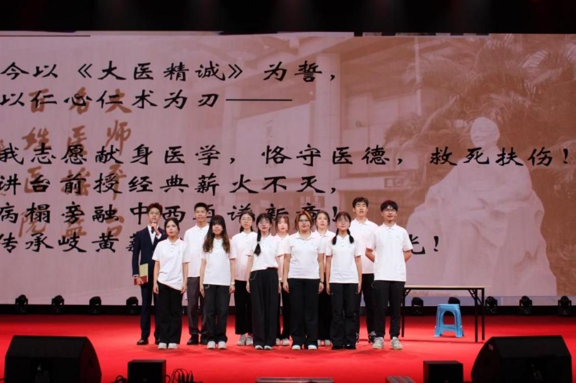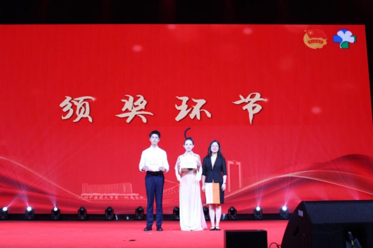 在获奖节目颁奖环节,《杏林长歌-薪火耀岭南》和《玉鸟》以振奋人心的舞台表现脱颖而出,荣获“最佳组织奖”。最后,全体师生共同唱响《星辰大海》,并齐声高唱团歌,齐诵“请党放心,强国有我”,激昂的歌声与誓言将晚会推向高潮。