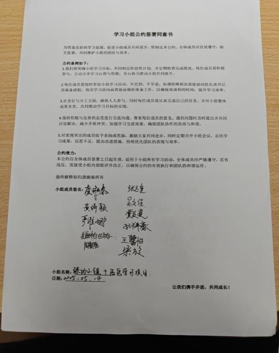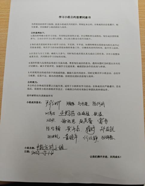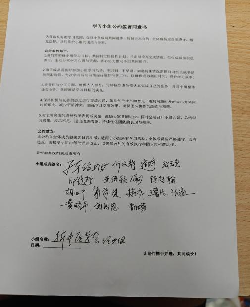 会议最后是学习小组公约同意书签署。全体成员签署学习小组公约,承诺遵守小组纪律,积极参与各项学习活动,以实际行动为学习小组的良好发展贡献力量。