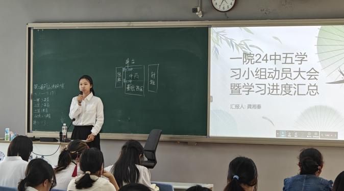 2025 年 5 月 14 日(周三)17:30,伟德国际1946源于英国24级中医学五年制学习小组在B 栋教学楼 508 教室举行学习小组第二期动员大会暨近期学习总结大会,辅导员邱敏老师及学习小组全体成员出席了本次会议。本次活动以“‘继往开来,精诚致远’—— 传承一期经验,共筑二期新篇”为主题,旨在全面总结过往经验,清晰明确未来方向,为即将开启的二期学习活动营造积极氛围、奠定良好开端。