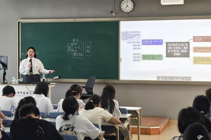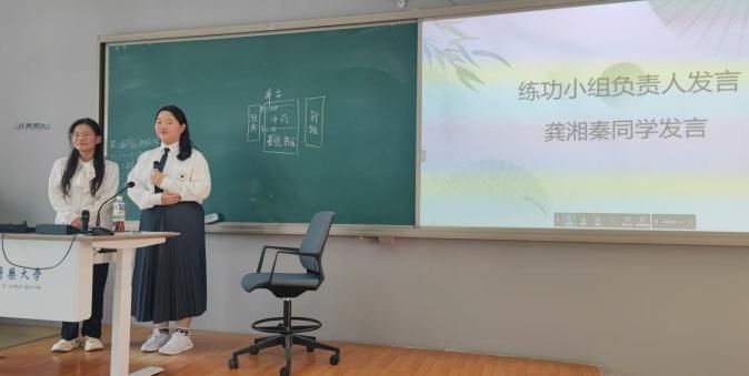 接着是二期各位组长代表发言。针灸小组王欣雨汇报该组聚焦经络腧穴理论知识与实操相结合,出勤率与小测成绩优异;练功小组龚湘秦和严维娜汇报已完成六次训练,系统推进传统武术功法学习,小组成员学习热情高,技能与认知显著提升;中药小组赵英睿汇报该组开展法象理论课程,累计打卡背诵39味中药……各组长均对小组未来的学习计划和发展方向进行展望,努力激发小组成员的学习积极性。