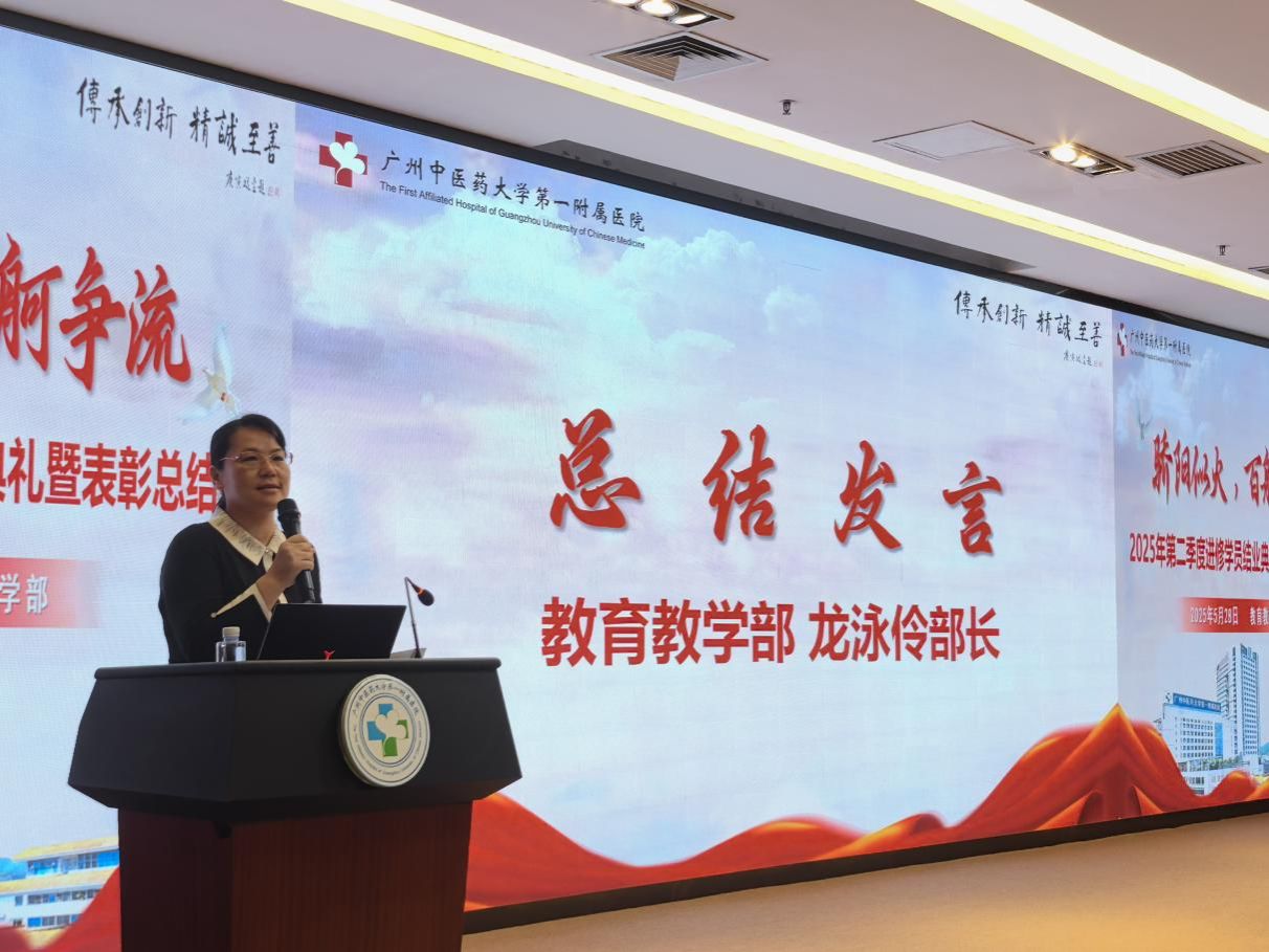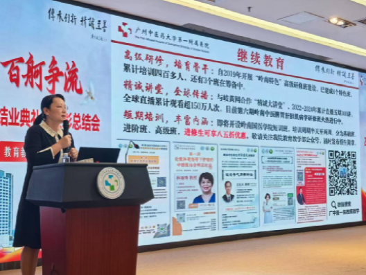 最后,教育教学部龙泳伶部长对2025年第二季度进修结业工作进行总结,全面展示了岭南国医学院多样化的培训体系,涵盖不同时长、不同专业、不同层次,既有面向医疗工作者、相关从业人员的专业培训,亦有面向广大群众开设简便验廉的基础中医手法培训,呼吁进修学员不拘泥于所学专业,全方位培养个人能力,合理规划职业生涯,珍惜每一次进修学习的机遇,秉持大医精诚、岐黄济世的信念多尝试、多学习、多创新。