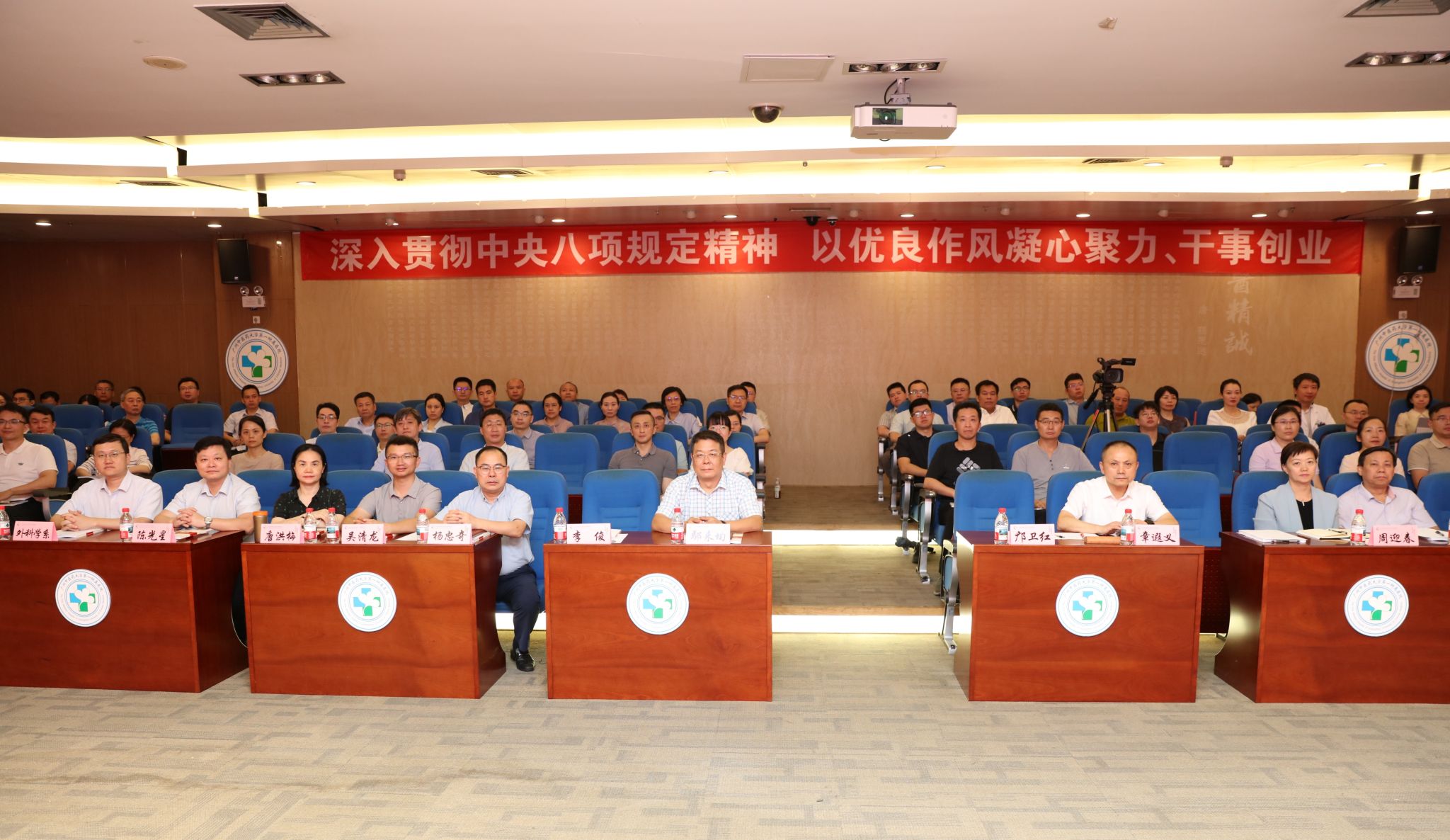 大暑时节,万物并秀。为深入贯彻全国教育大会精神,全面推进新时代研究生教育高质量发展,落实立德树人根本任务,7月22日下午,我院在门诊楼七楼会议室隆重举行2025年研究生导师培训会,会议线上线下同步开展。大学研究生院鄢来均院长、培养与学位科吴清龙科长,学院邝卫红书记、李俊院长、章遐义副书记、杨忠奇副院长、黄绍刚副院长,各系部主任及全体研究生导师共计180余人参加培训(我院分院——重庆医院导师线上参加培训)。培训由教育教学部周峰副部长主持。
