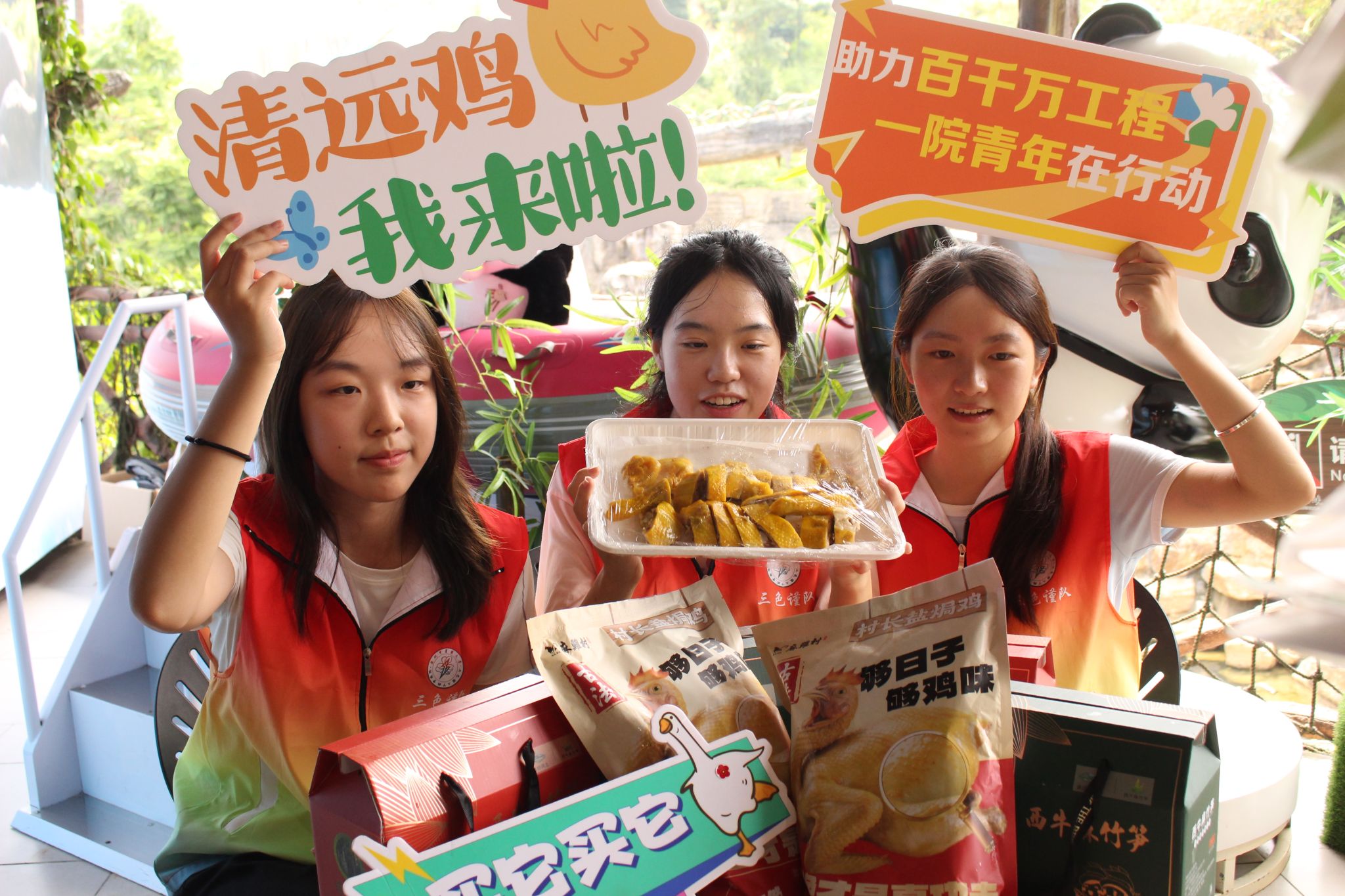 为深入了解地方产业发展,积极响应“百千万工程”的号召,充分发挥青年在助力地方发展中的作用,三色谨队携手东秀集团及其旗下的麻鸡村餐厅,开展了清远鸡主题的公益宣传及研学活动。