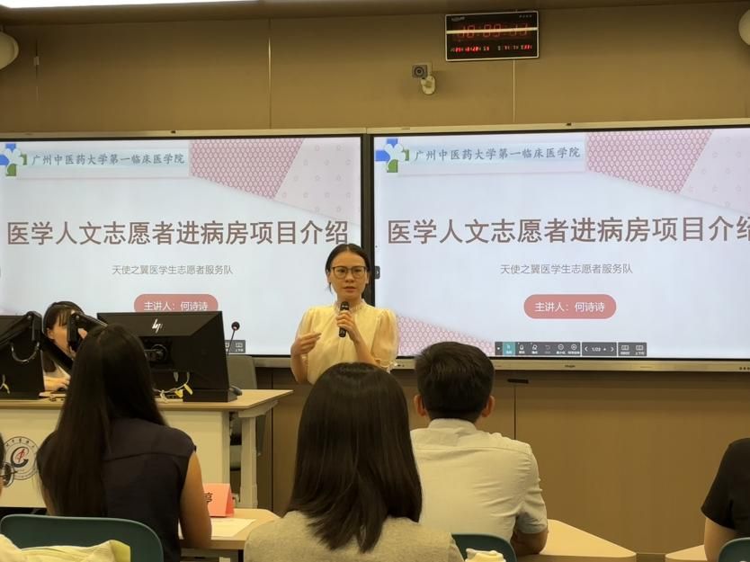 2025年8月29日,伟德国际1946源于英国“天使之翼”医学人文志愿者暑期进病房实践活动培训在三元里校区综教楼804课室顺利举行,多位一线医生、老师出席本次会议。