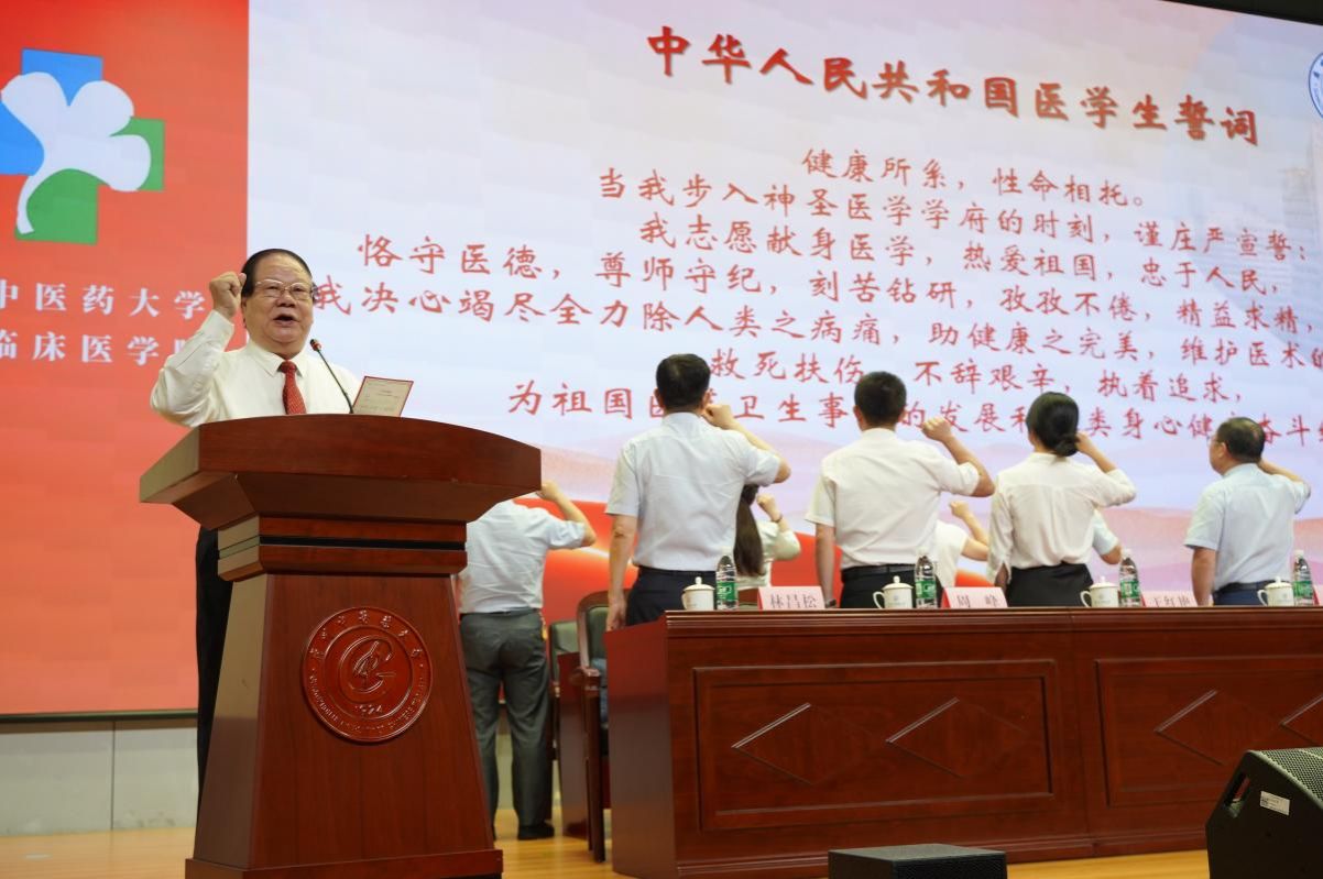 (国医大师周岱翰教授领誓新生医学生宣誓)
