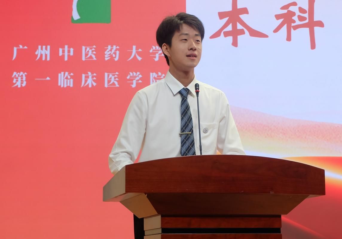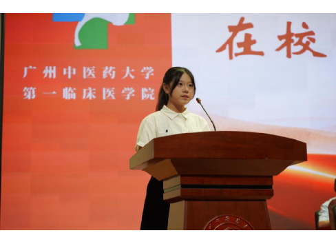 在校生代表——学院学生会主席团成员赵懿卓同学结合自身经历,分享了在大学社团活动中获得的成长与收获,并介绍了学院团委、学生会等在凝聚青年、服务同学方面取得的一系列成绩。研究生新生代表吴岱琳同学以科研探索为主题,阐述了在未知领域求索过程中坚持初心、勇攀高峰的重要性。本科新生代表王天然同学呼吁全体新生勤学知识、淬炼医德,既要扎根传统、传承精华,也要敢于创新、彰显活力,努力成为新时代“铁杆中医”精神的践行者。