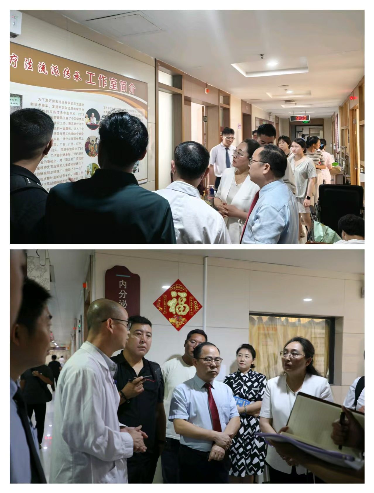 调研团先后走访了针推中心一区、内分泌科。在针推中心一区,陈振虎主任详细介绍了针灸、推拿等中医药特色疗法在临床教学中的实践与传承。他从经典理论与技法实操结合的课程设计,到“师带徒”以老带新的带教模式,系统阐述了特色疗法的技术传承路径。在内分泌科,刘树林主任则分享了我院在推动中医经典回归临床方面所做的努力与取得的成绩。科室坚持以中医经典理论为指导,深入挖掘经方在内分泌疾病治疗中的特色优势,将《伤寒论》等经典著作中的方证体系系统融入现代诊疗和教学实践中,积极践行“早临床、多临床、反复临床”的教学理念,培养了一批熟谙经典、善于临证运用的青年医师,切实推进了中医经典的传承与创新。