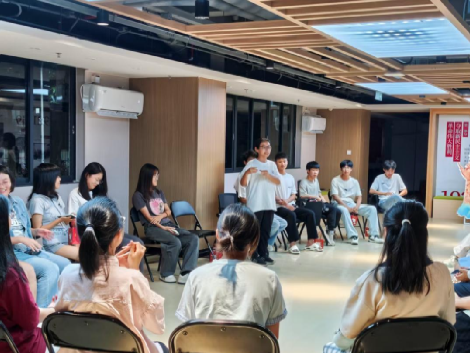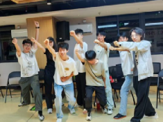 接下来是“灯下共嬉”环节,简单有趣的小游戏让大家迅速活跃起来。此刻我们不仅是共话风月的“赏月人”,也是并肩作战的“好战友”。“方言传话”小游戏当中,有广府语言的碰撞,亦有北方方言的豪迈飒爽。用最熟悉的乡音说出的句子,虽然可能早已偏离原句的含义,但在欢声笑语中漂泊的心已然找到归属。紧随其后的“逛三园”则是反应力与知识储备的较量,节奏明快的拍手声里,口令一下,同学们需迅速接龙,场面既紧张又充满趣味。而“集体雕塑”环节,则瞬间点燃了全场的想象力与表现力,主持人一声令下,各组同学在十秒内迅速定格,摆出与主题相关的造型,最富创意的一组留下了满是露齿笑的珍贵合照。大家在默契的配合与创意的碰撞中,心与心的距离悄然拉近。