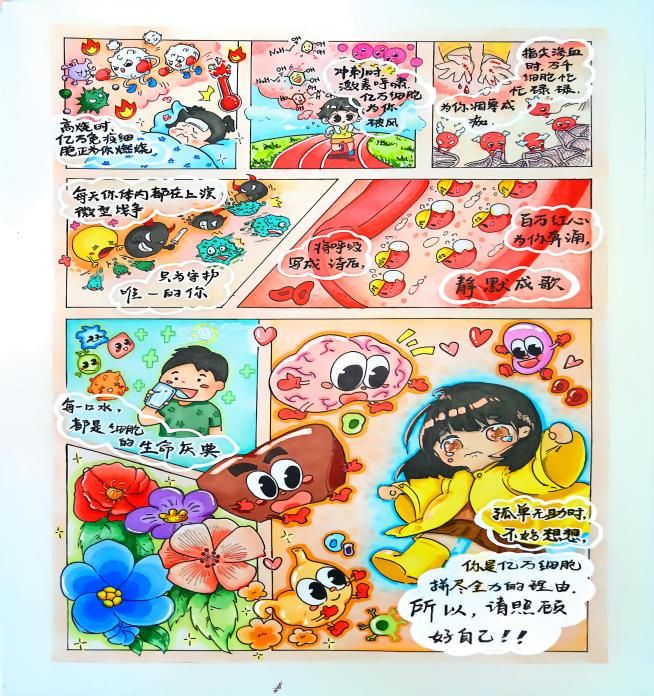 创作过程中,曾文静同学深耕主题、巧思构思,以艺术笔触传递心理健康理念;黄婷老师全程精准把控、耐心点拨,师生携手打磨出兼具思想深度与艺术感染力的佳作。作品不仅为大学生维护心理健康提供了新启发,更激励着同学们以乐观包容的态度、开放进取的心态追逐美好生活、成就更好自我。
