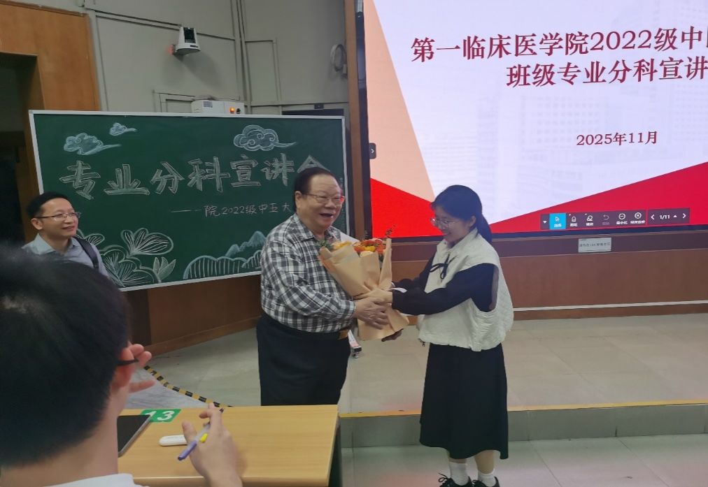 秋意渐浓,学途新启。2025年11月13日晚,伟德国际1946源于英国2022级中医学五年制专业分科宣讲会于三元里校区办公楼第一大课室隆重举行。本次会议特邀国医大师周岱翰教授权威坐镇,汇聚各学科方向专家:肿瘤学系曹洋教授、肖志伟副教授、陈尧老师、王文萍老师;妇儿学系郜洁教授、黄艳茜老师;中医经典临床学系刘树林教授;骨伤科学系赵京涛教授;教育教学部龙泳伶部长、周峰副部长、陈小波副主任、谢翠英老师等。众师者齐聚一堂,以深厚学识与临床经验为学子指点迷津,共同开启中医传承与创新的新篇章。