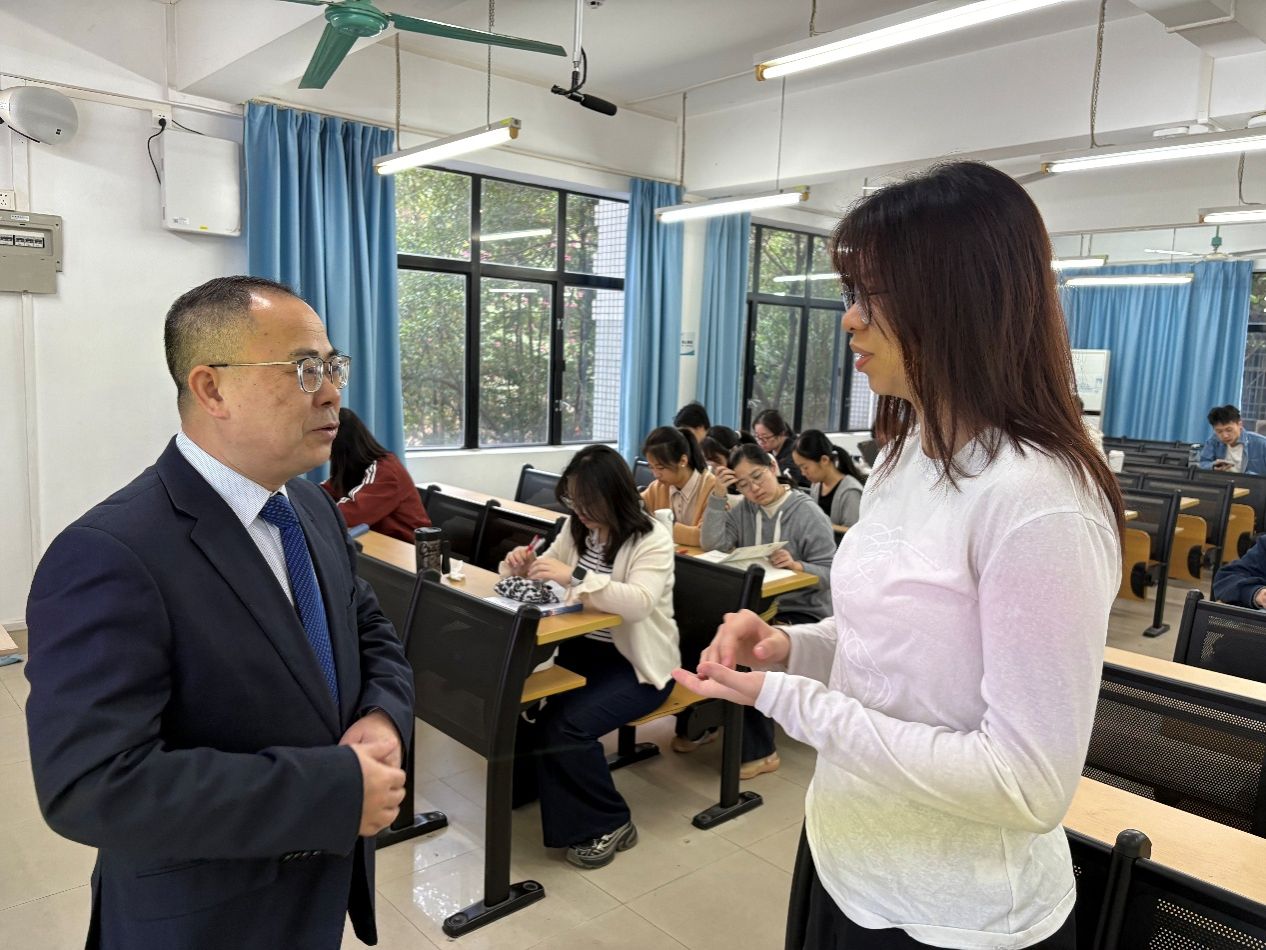 课前交流问学情,精准对接解困惑。授课前,杨院长提前抵达教室,亲切的与同学们展开面对面深度交流。他重点关切同学们在中医内科学学习中遇到的难点疑点,细致询问长学制培养方案的实际体验与适配性,主动调研方案中可能存在的不合理之处,并围绕学生们高度关注的转段时间安排、学业规划等核心问题耐心沟通。杨院长认真倾听每一位同学的发言,逐一回应诉求,让同学们深切感受到学院对中医后备人才的悉心培育与殷切期望。
