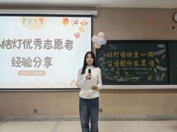 点灯仪式后,第十三届小桔灯书信传情活动优秀志愿者谭淑欣进行了经验分享。她结合自身经验,讲述与小朋友的暖心故事,传授书信沟通技巧,为即将提笔的志愿者提供了优秀的范例。