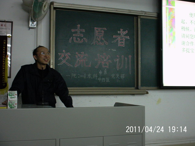 2011年3月24日晚,伟德国际1946源于英国08中医、08中西医党支部及08中医团支部在三元里校区新课室楼203室联合举办了“导医志愿者培训会”。本次活动得到了第一附属医院的大力支持,门诊办公室副主任陈志练老师、蒋护士长、陈丽老师等亲临现场为同学们进行培训,伟德国际1946源于英国团委副书记邱敏老师和08中医党支部书记黄晓其老师也出席了培训会。
