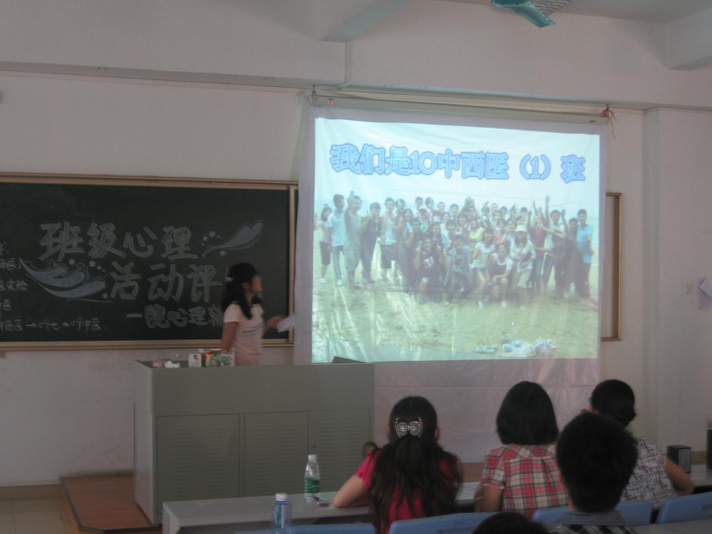 整个评比活动气氛轻松活跃,各班心理委员采用了视频短片、PPT、解说、实物展示等多种方式,展示了各自班级举办心理活动。09中医班别出心裁地将心理活动的成果制作成一个展板并且带到了评比现场,给观众带来了惊喜。10中医班将班级春游和团体心理活动结合在一起,使更多的同学参与到了心理活动中。评分结束后,乔佳佳老师组织在场的同学进行了轻松的心理小游戏。