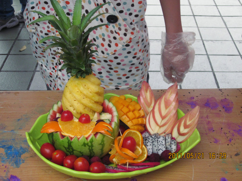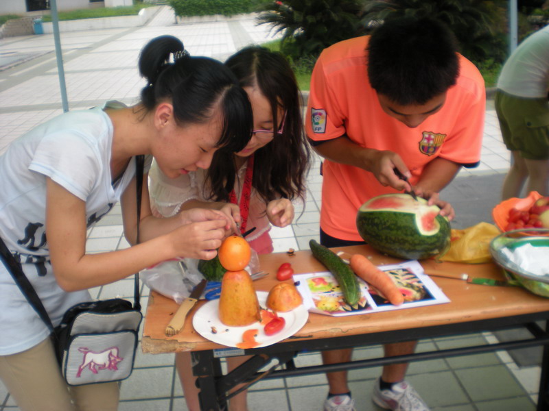 2011年5月21日下午,伟德国际1946源于英国学生会主办的向日葵后续活动(向日葵活动——我院品牌活动之一,即由具备一定条件的高年级学生带领低年级学生,对他们的学习、生活、工作、思想等方面进行指导,从而共同进步。我们称高年级同学“太阳”,低年级同学“向日葵”。)之“乐果拼缘”水果拼盘大赛在一饭前空地隆重举行。评委嘉宾为校自律委员会主席及各兄弟学院自律部部长。