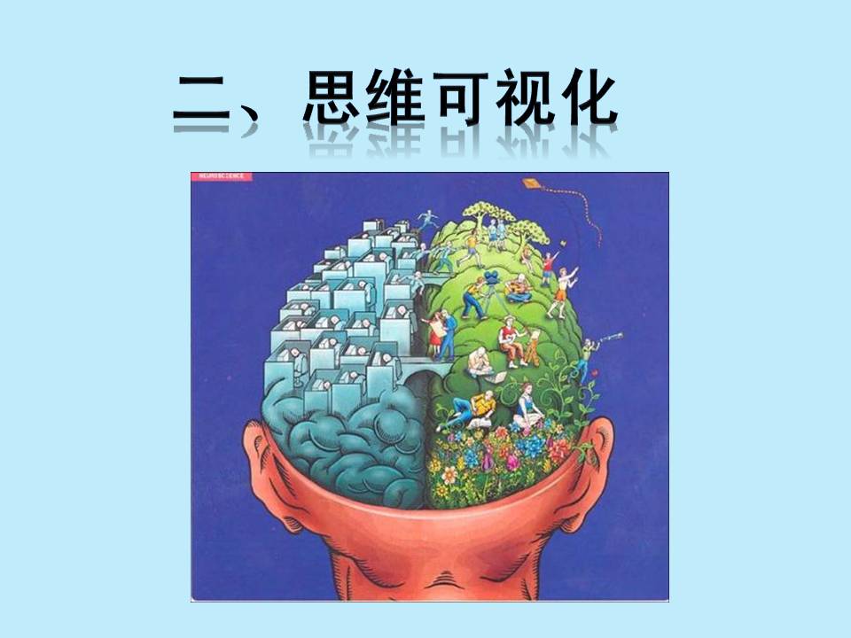 思维可视化,就是用图形图象的方式将思维过程显示出来,以提高大脑思维的效率。其在教学中的作用:厘清概念、建构知识;拓展思路、深化思考;形象直观、帮助记忆;集中注意、避免重复;有利教学、辅助评价;巩固提高、激发创造。