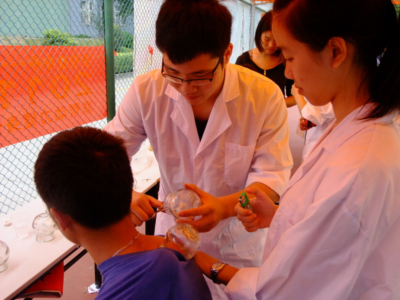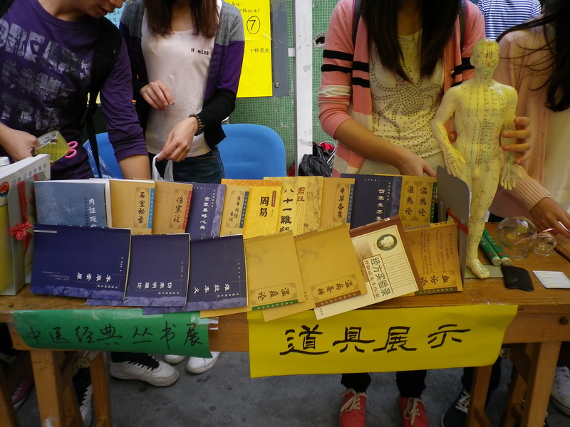 除八段锦表演及教学、艾灸、推拿、拔火罐、耳穴贴、血量测压、秋季养生茶及糖水的介绍和试饮、有奖游戏等各班基本共有的宣传形式外,还有各班的特色项目,如09中医的运动养生及十二时辰养生讲解;09中医七的秋季保健知识讲解;10中西医的中医养颜面膜等。