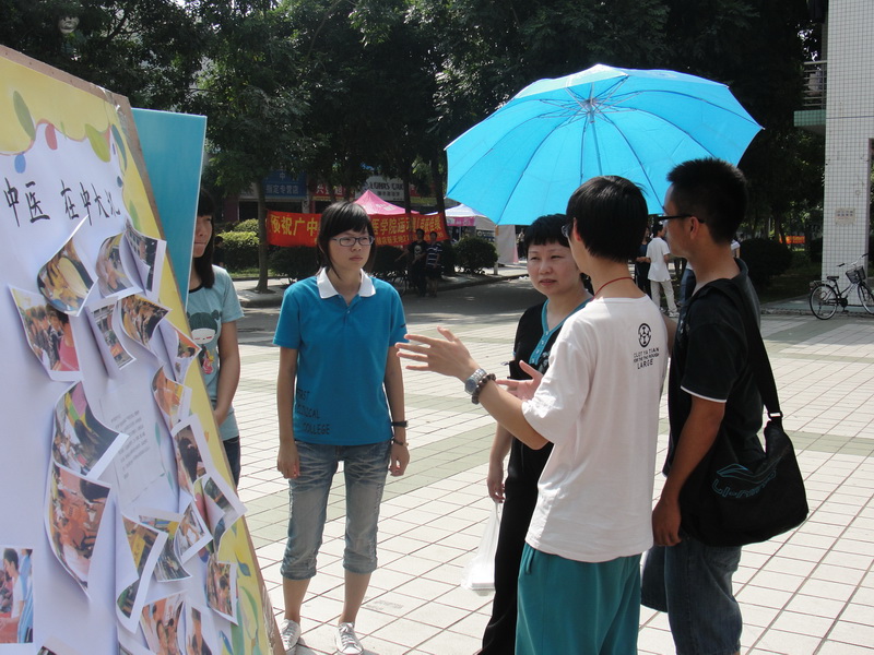 今年,第九届科普宣传周各班确定了不同的主题,充分发挥了中医药特色,如09中医本在中山大学北校区的“风雨国医,携手传承”;09中西医在广东药学院赤岗校区的“传承中医魂,散播健康种,科普我先行”;10中医在广州大学的“师岐黄之术,扬杏林之风”;10中医七在广州美术学院的“古韵流芳,中医国光”等。
