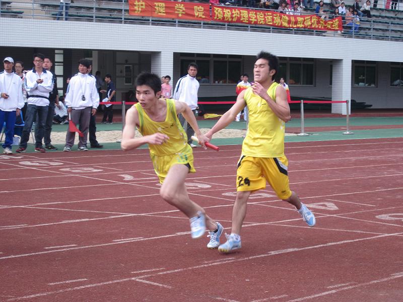 校运会第二天上午,三元里校区08级的孔子滔一举夺得学生组男子标枪决赛第一名,也是我院学生组所有项目比赛中的最好成绩。“付出了就会有收获”在问及他的获奖感言时,他诚恳地回答道。谈及训练方法,他说“由于标枪的训练对场地要求比较特殊,我需要挑选每天中午大家都在午睡的时间,到开阔的操场进行训练,这样才不会伤到过往的同学。”