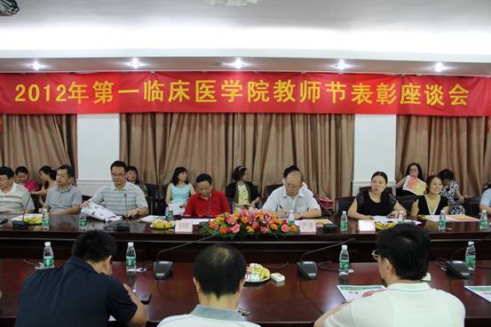 【一院讯】9月10日下午,我院在大学三元里校区办公楼二楼会议室举行2012年教师节表彰座谈会,学院党委严晋副书记、张伟程副院长出席会议,并为获奖的教师代表颁奖,教学处方熙茹处长主持会议。