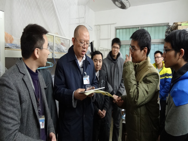 走访期间,严书记与宿舍成员亲切交谈,对宿舍的安全防盗、保暖防寒、卫生保洁和附院实习等情况做了耐心了解。严书记以其风趣、幽默、亲和的形象和同学们建立了良好的互动,在场的同学时不时发出一阵开怀的笑声,气氛融洽。看见同学们的宿舍生活,严书记也不禁频频向大家回忆起自己刚留校任教的时候,现今的书记当初也曾在这栋原来的青年教工宿舍居住过,在场的同学不仅感觉到了书记的感慨,亦感觉到了亲近和温情。