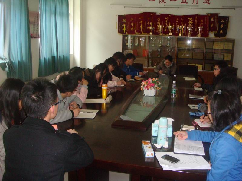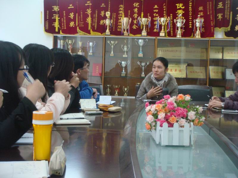 天气寒冷,却消减不了学生干部们心中的热情,毕竟是一个难得的机会向郭书记学习。座谈会开始, 首先依次由党、团、班的负责人对分别对该学期以来的活动做了简单总结,并就工作中所遇到的问题及困惑向郭书记提出了问题。关于班级活动参与率不高的问题,郭书记建议,组织班级活动的范围一定要广,要充分了解同学们喜欢什么,需要什么,此外还得注意中医学专业学生的特点等,举办活动要以“质”为要,而不是“量”,办同学们喜欢、需要的活动,参与率自然高。党、团支部方面存在活动形式相对局限,且理论知识不够扎实的情况。对此,郭书记指出,党、团人员思想层面要端正,不能只为名号,而要追求实质,真正做到先锋模范。她建议每学期开展一次民主生活会,让组织内部人员进行自我批评,共同进步!此外,郭书记希望班级三大组织能够多多联合、交流,分工合作,共同为班集体努力!