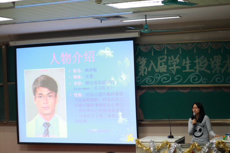 参赛选手的选题涉及各个领域,如关于文化类的汉服文化、儒家思想与养生文化,医学类如诺如病毒、中西医文化之争,文娱类的江南style走红的原因分析,社会类的女性觉悟与女性解放等。在初筛中胜出的8位选手在“讲台”上展现各自的知识传授能力,为评委和观众们献上一份份知识大餐。经过激烈的竞争,最终由来自11中西医的林玮怡夺得本次大赛一等奖以及最佳课件制作奖,她主讲的题目是“如何读懂表情语言”。学工办何丽老师为此次大赛发表总结:“学习的最高境界是——教会他人”。学生授课才艺大赛的目的在于表达学生对老师的感激之情,展示并锻炼学生传授知识的能力,相信参加此次大赛的选手和观众们对“传道授业”有更深刻的理解。