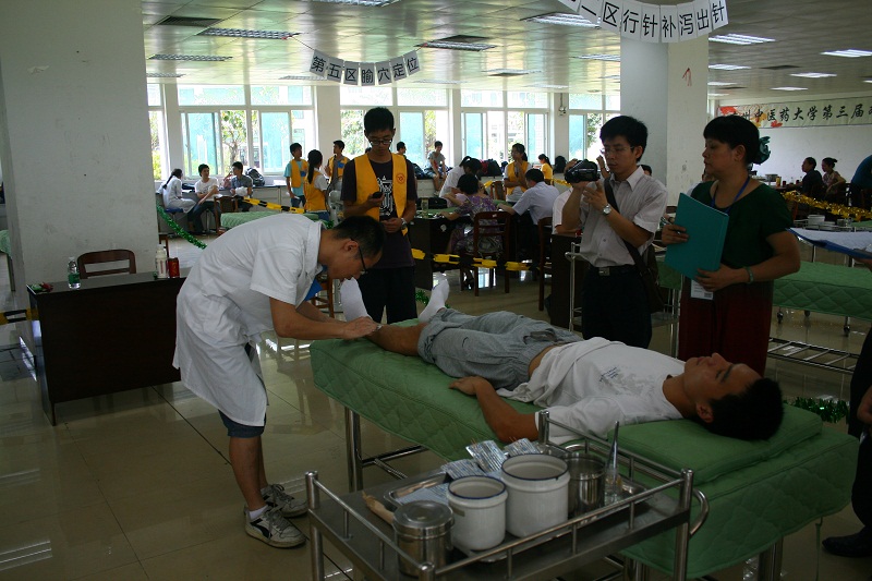 6月2日上午,第三届本科医学生针灸推拿技能竞赛半决赛在大学城校区针灸楼大练功房举行。我院共派出三支队伍9位同学参加本次比赛。经过三个小时的激烈比赛,一院3队以260.83分获得团体二等奖(一等奖由针康学院1队获得),一院2队获得三等奖,张庆武、刘伟健等5名选手共获得7人次个人单项奖,另外,张庆武获得个人全能二等奖,邹泽隆、许岳荣获得个人全能三等奖,进入总决赛。