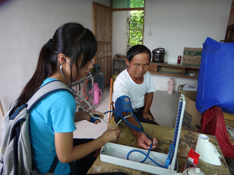 河源龙川暑期社会实践服务队由16位我院学生、3位广东工业大学学生和1位广东财经大学学生组成,进行义诊、义教和义修活动。下乡第一天,我们在回龙镇街道展开义诊活动:量血压、艾灸、拔火罐、推拿,正逢当地集日,街道上人来人往,义诊活动受到极大欢迎,龙川电视台前来报道,受到当地民众的信任和支持。而罗中村的义诊和义修活动最令我们震撼,得益于当地村委的广播宣传,队员们刚抵达义诊点就被围得水泄不通,当日服务人次达163人,义修的队员更是忙到晚上8点。
