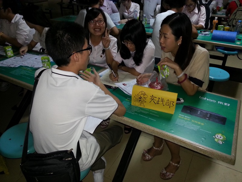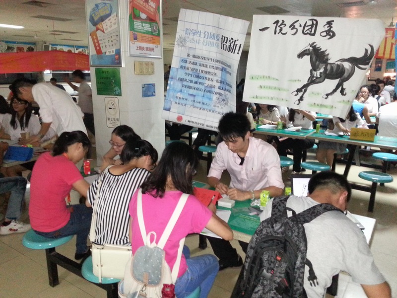 2013年9月14日晚7点到9点半,我院学生分团委在大学城校区第二食堂一楼举行了2013届招新面试,众新生纷纷前往自己心仪的部门参加面试。此次的面试官为我院学生分团委三元里和大学城校区的全体委员。新生们有的从容不迫,有的略显紧张,有的侃侃而谈,有的表现文静,但大家都认真仔细地与面试官对答,渴望在大学校园里能找到属于自己的舞台,得以展示自己的才华,提高自己的综合能力。而各部门的面试官们也都绞尽脑汁,设计出合理而有意义的问题与面试者进行交流,希望能选出“好苗子”,为我院学生分团委注入优秀的新生血液做好准备。