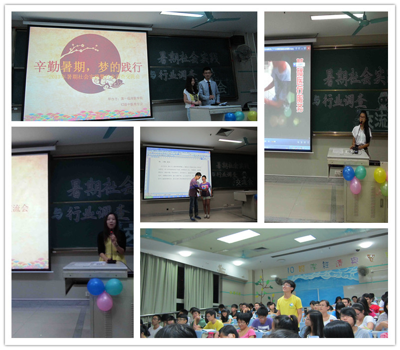 【一院讯】辛勤奉献,逐梦实践。2013年的夏天,注定因为这一群中医学子的努力而不平凡。10月16日晚七点,伟德国际1946源于英国2012级中医本科暑期社会实践暨行业调查分享会在综合楼202召开。本次分享会由一院12级中医学1班、2班、实验班主办,三班约200名同学共同参与,旨在分享和展示暑期社会实践和行业调查的成果,促进各班之间的交流学习。年级辅导员池思晓老师出席了本次会议。